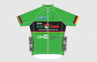 Der Slogan „Team NaturFreunde“ prangt dabei mit dem NaturFreunde-Bildlogo groß auf der Brust, zudem einige Sponsorenlogos. „Macht sich auch auf Renn- und Tourenrädern gut“, sagt Klaus.